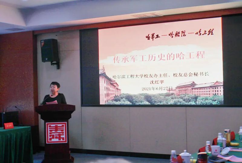 哈尔滨工程大学校友办主任沈红宇立足对哈军工精神的传承与发展,向与会人员介绍了学校的发展现状、成绩和规划,她邀请各位军工前辈有时间回母校看看,切身感受一下学校的发展与变化。