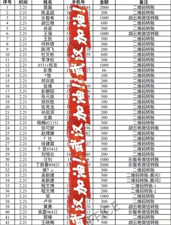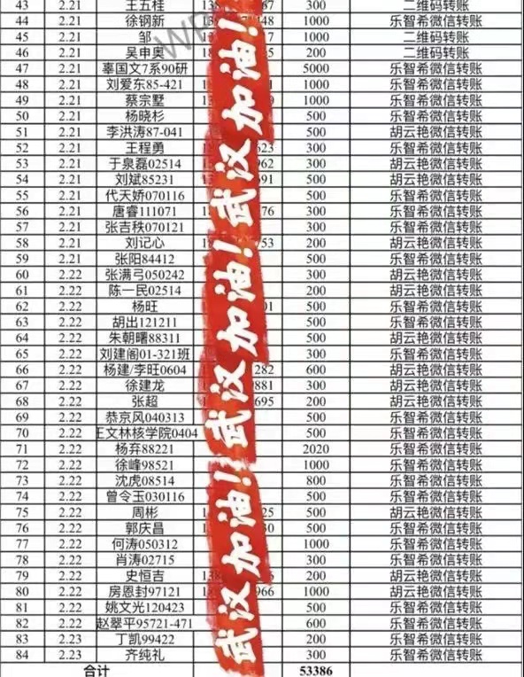 当日,由秘书长苗磊起草的《哈尔滨工程大学湖北校友会对口支援黑龙江援鄂医疗队募捐倡议书》发出,正式开展募捐工作。倡议书一发出,校友们积极响应,至晚11点,短短3小时便有62位校友奉献爱心,募集36866元;截止到23日12点,湖北校友会秘书处共收到来自校友的84笔捐款共计53386元。