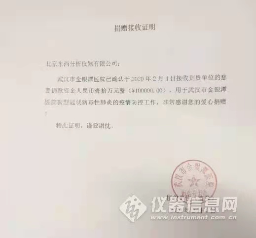 面对疫情,李晓鸥带领东西分析全体员工做好自身防控工作的同时,还积极助力抗击疫情。武汉市金银潭医院,是全国最早集中收治不明肺炎患者的医院,是这场全民抗疫之战最早打响的地方,这里有“拼渐冻生命,与疫情竞速”的张定宇院长,有“海报”天使刘丽,还有许多奋斗在最前线的生命守护者,是全国瞩目的地方。日前,武汉市金银潭医院收到了来自东西分析的十万元慈善捐款,用于医院新型冠状病毒性肺炎的疫情防控工作。这令医护人员十分感动,带着温暖的捐款不仅体现了企业家对一线医护人员的关爱,更代表着哈工程校友对抗疫的庄严使命和必胜信念。
