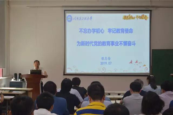 7月3日下午,在31号楼370会议室,副校长张志俭教授主讲了一次“不忘办学初心,牢记教育使命,为新时代党的教育事业不懈奋斗”为主题的党课。校友办党支部书记刘文及全体校友办党员同志参加了党课学习。