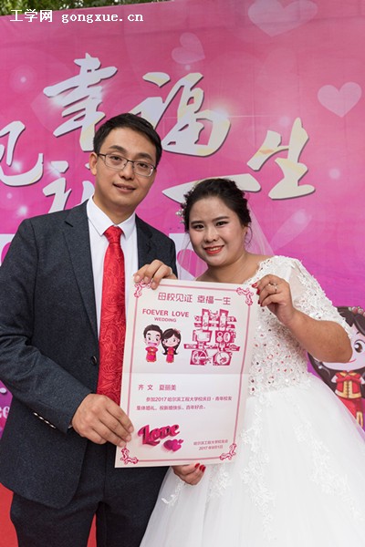 从本科到博二,李超、谢心如在学校中学习了七年,生活了七年,收获了学业、收获了事业、更收获了爱情。李超说:“有幸在校庆日这一天,在学校举行结婚典礼,有师长、同学的见证与祝福,我们是最幸福的人。”