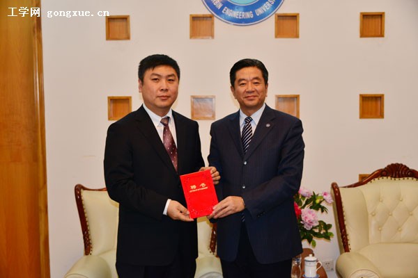 19日,我校校友、大连行健数控集团有限公司董事长杨满东受聘我校兼职教授,副校长杨冶出席聘任仪式,并为其颁发聘书佩戴校徽。