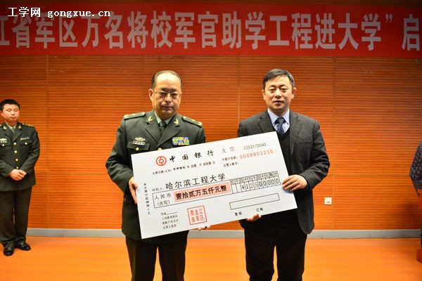 省军区日前捐资25万元,用于资助我校和黑龙江大学100名家庭经济困难新生。“万名将校军官助学工程进大学”启动仪式22日在启航活动中心学术报告厅举行。校纪委书记杨志宏、黑龙江大学党委副书记关健、省军区政治部主任夏中国少将、省教育厅副巡视员房文斌出席启动仪式。