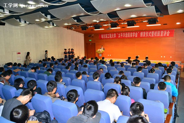 “太平洋造船奖学金”颁发仪式18日在启航活动中心学术报告厅举行。来自船舶学院、动力学院、自动化学院的李哲等35名同学荣获2013年度太平洋造船奖学金。校纪委书记杨志宏、大洋造船厂总经理鲍彤出席仪式。